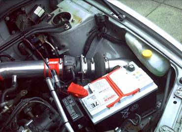 As a rule of thumb, helping your engine breathe easier will produce more power. First i would suggest replacing your air filter. The best product ive found wasn’t from a jap company, but from our US friends. Hotshot is one of the US based companies that are leading the way in tuning the infamous SR20DE. They have what know as the HS CAI, cold air intake system, which replaces the standard airbox and intake pipe. This system relocates the air filter inside the passenger wheel arch, by enlarging an existing hole in the inner wing beside the battery. The intake pipe which is supplied with the kits then completes the system. The idea is that as air flows through the filter, the length of the pipe increase the flow characteristics of the air, thus creating a ram air effect, rushing the air into the engine, improving the performance. Gains of up to 10 BHP can be expected.